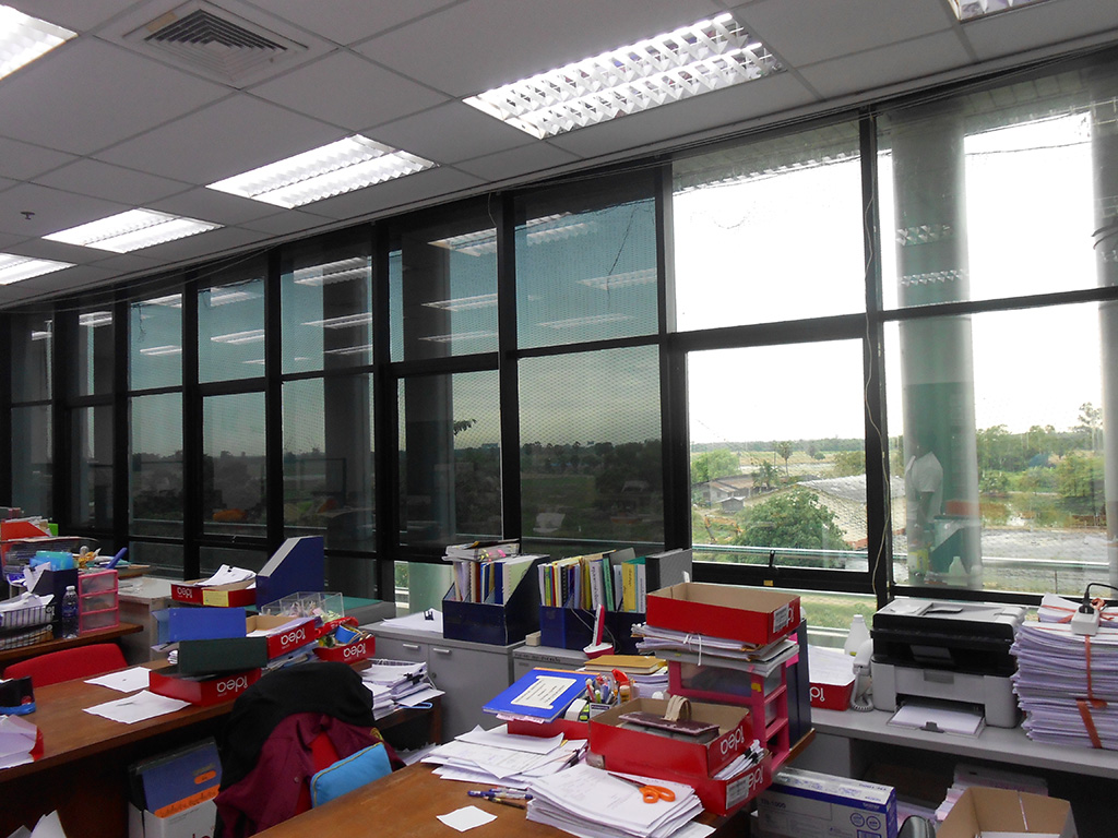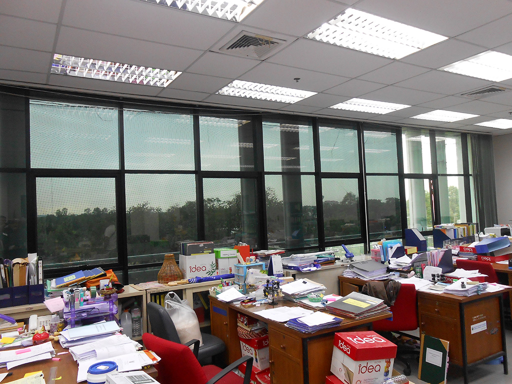ที่สำนักงานบริหาร สทช. ได้ติดฟิล์มกรองแสงอาคารมานานแล้ว ปัจจุบันฟิล์มกรองแสงได้เสื่อมสภาพลง ทำให้ไม่ช่วยในเรื่องของการลดแสง และลดความร้อน จึงทำการเปลี่ยนฟิล์มกรองแสงอาคารใหม่ ฟิล์มกรองแสงอาคารที่เลือกใช้เป็น MAXGUARD รุ่น Silver Black 5 ซึ่งเป็นฟิล์มกรองแสงสำหรับอาคารโดยตรง มีสเปค ดังนี้