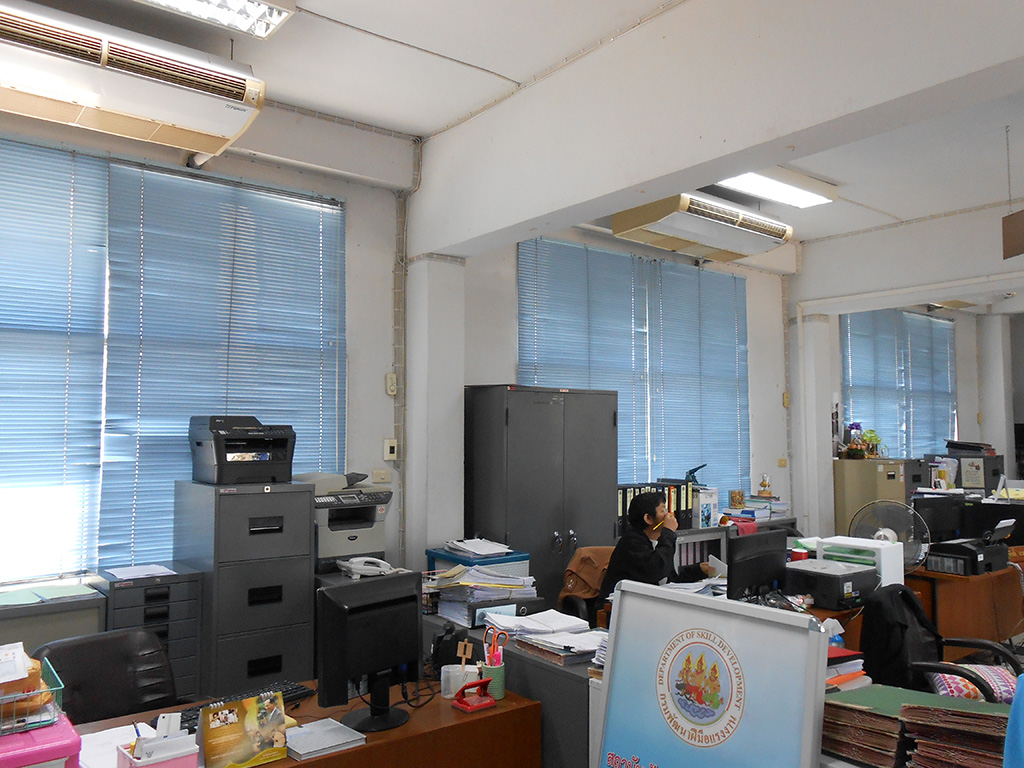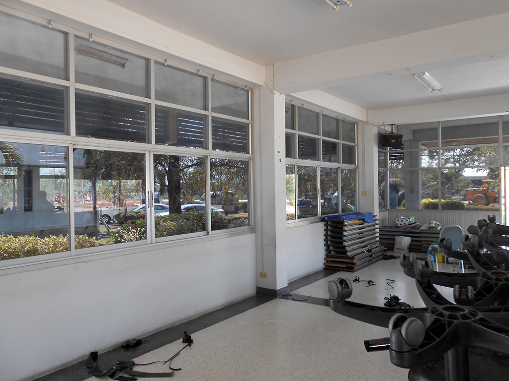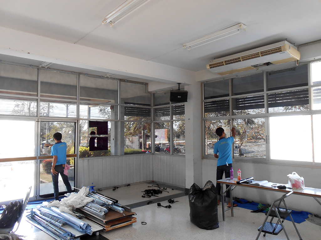 ที่สถาบันพัฒนาฝีมือแรงงาน 14 ปทุมธานี ปกติจะมีมู่ลี่ใช้บังแดดอยู่แล้ว แต่เนื่องจากมู่ลี่ได้เสื่อมสภาพลง และท่านผอ.ต้องการปรับภูมิทัศน์ภายในสำนักงานใหม่ ให้ดูโปร่งโล่ง สบายตา จึงถอดมู่ลี่ออกทั้งหมด และติดฟิล์มกรองแสงอาคารแทน ทั้งห้องประชุมและสำนักงาน ฟิล์มกรองแสงอาคารที่เลือกใช้เป็น Nexfil RD85 ซึ่งมีสปคดังนี้