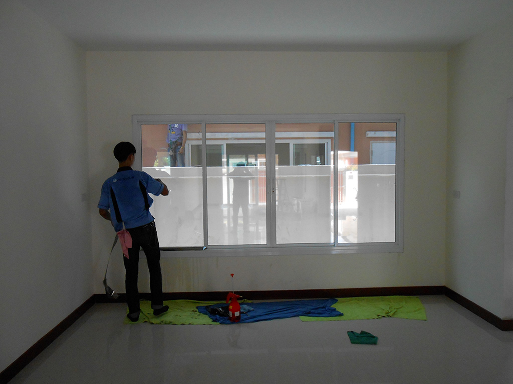 บ้านหลังนี้เป็นบ้านใหม่ ก่อนเข้าอยู่เจ้าของบ้านตัดสินใจติดตั้งฟิล์มกรองแสงอาคาร เพื่อลดแสง และลดความร้อน ก่อนที่จะเข้ามาภายในบ้าน ทำให้บ้านอยู่สบายมากขึ้น อีกทั้งยังทำให้ตัวบ้านดูสวยงามมากขึ้นอีกด้วย ฟิล์มกรองแสงสำหรับกระจกบ้าน ที่เลือกใช้เป็น MAXGUARD รุ่น Chrome20 ที่มีคุณสมบัติลดความร้อนได้ดี แต่ไม่ทำให้บ้านมืด และยังให้ภาพลักษณ์ภายนอกสไตล์โมเดิร์นอีกด้วย