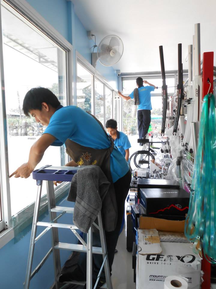 ร้านจักรยานร้านนี้เลือกใช้กระจกด้านหน้าและด้านข้าง เพื่อโชว์สินค้า แต่มีปัญหาเวลาช่วงบ่ายแดดมาแรง ทำให้ภายในร้านร้อนอบอ้าว และทำให้สินค้าที่มีค่าเกิดความเสียหายได้ จึงเลือกติดตั้งฟิล์มกรองแสงเพื่อแก้ปัญหาดังกล่าว แต่ใช้เป็นฟิล์มค่อนข้างใส เพื่อโชว์สินค้าด้วย ฟิล์มที่เลือกใช้คือ HI-KOOL R 10 เขียวใส สเปคฟิล์มมีดังนี้ มีค่าแสงสว่างส่องผ่าน 50% ป้องกันรังสี UV 99% มีค่าแสงสะท้อน 12% มีค่าลดความร้อนรวม 60% ระยะเวลารับประกัน 7 ปี