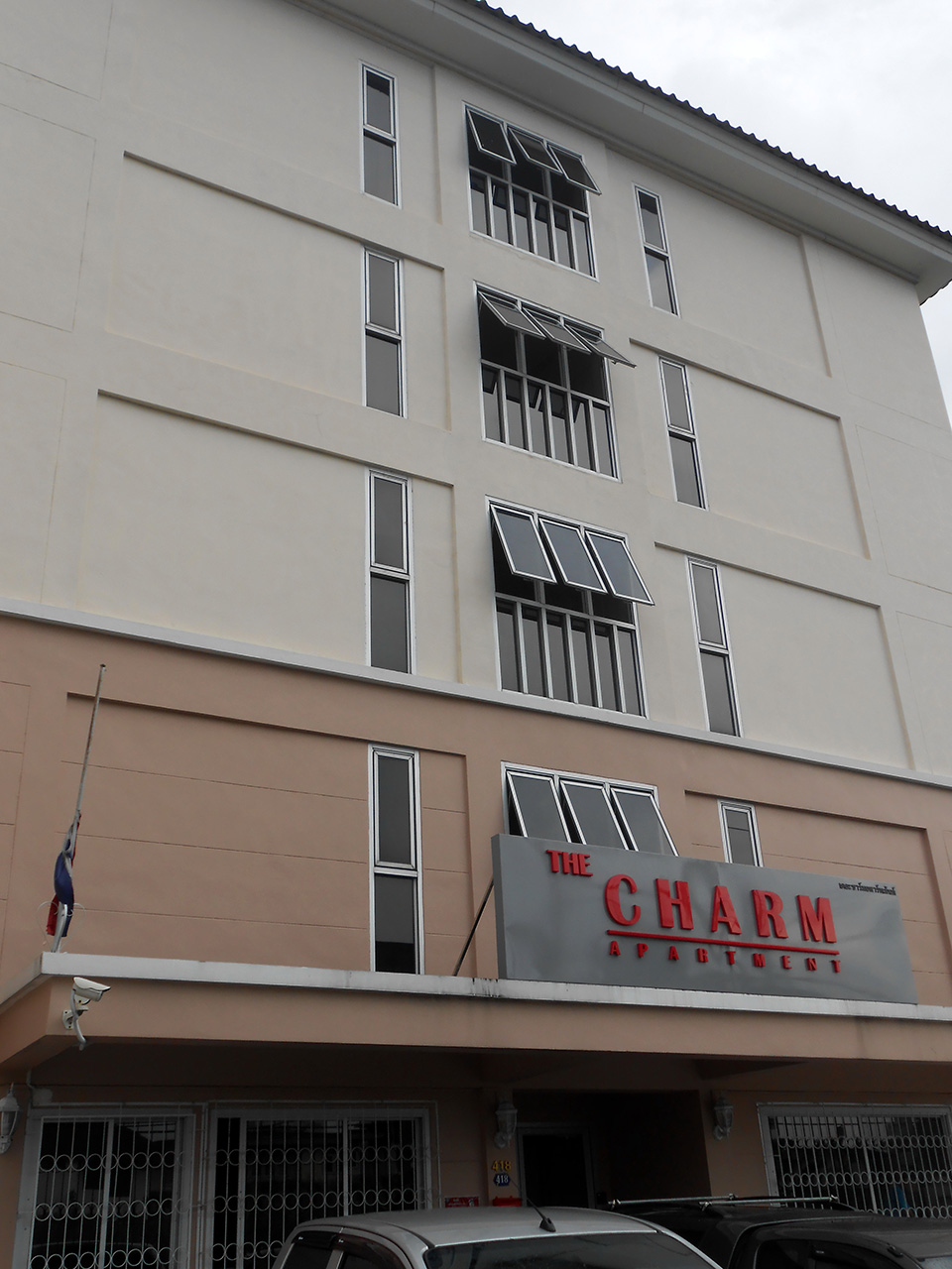 ที่ชาร์มอพาร์ทเม้น ลูกค้าแต่ละห้องได้นำสติกเกอร์มาติดตามช่องแสงเพื่อกันแสงแดด ทำให้ดูภาพรวมแล้วไม่สวยงาม เจ้าของเลยตัดสินใจ ติดฟิล์มกรองแสงอาคาร เพื่อให้ตึกดูสวยงาม และสามารถลดความร้อนได้จริง ฟิล์มกรองแสงอาคาร ที่เลือกใช้เป็นของ MAXGUARD รุ่น Steel15 ซึ่งไม่ทำให้ห้องพัก และทางเดิน มืดจนเกินไป และสามารถลดความร้อนได้ดี สเปคมีดังนี้