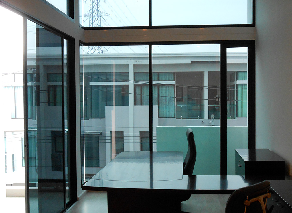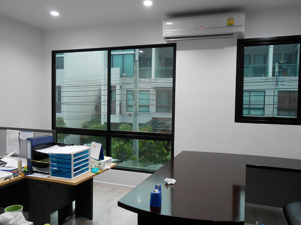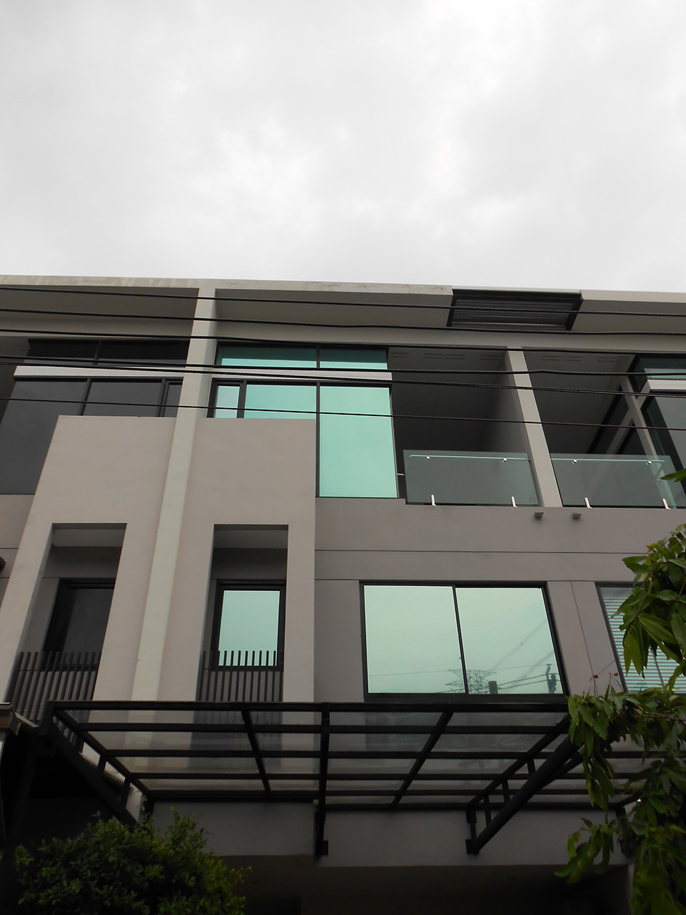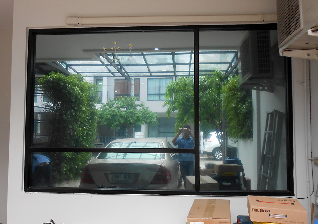 ทาวน์โฮมหลังนี้ทำเป็นออฟฟิศ ไม่ต้องการติดม่าน จึงติดตั้งฟิล์มกรองแสง เพื่อลดความร้อน และบังสายตาจากคนภายนอก ฟิล์มกรองแสงที่ลือกใช้เป็นของ MAXGUARD รุ่น Silver Black 5 ซึ่งมีประสิทธิภาพ การลดแสง ลดความร้อน และสร้างความเป็นส่วนตัวได้ดี ซึ่งมีสเปคดังนี้