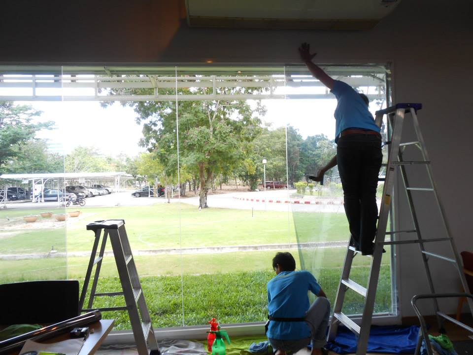 วันนี้มาติดฟิล์มที่ ภาควิชาวิทยาการคอมพิวเตอร์ มธ. รังสิต วัตถุประสงค์เพื่อเป็นการพรางตา และลดความร้อนจากไอแดด ฟิล์มกรองแสงที่เลือกใช้เป็น X-Guard RG 40 (ฟ้าใส) มีค่าแสงส่องผ่าน 43% ป้องกันรังสี UV 98% มีค่าแสงสะท้อน 18% ค่าลดความร้อนรวม 75% ระยะเวลารับประกันนาน 5 ปี