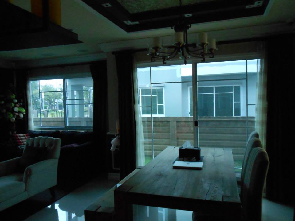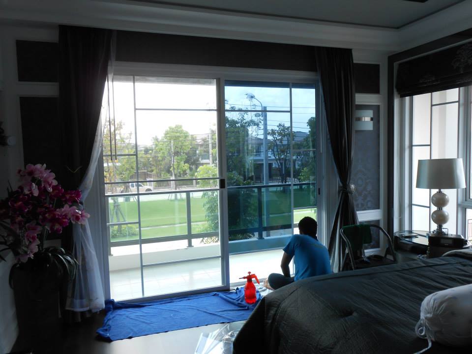 บ้านหลังนี้ เวลากลางวันแดดแรง ทำให้ภายในบ้านร้อนอบอ้าว แอร์ทำงานหนัก ทำให้ค่าไฟสูง จึงติดฟิล์มกรองแสงเพื่อลดอุณหภูมิภายในบ้าน ส่งผลให้แอร์ทำงานน้อยลง ประหยัดค่าไฟ