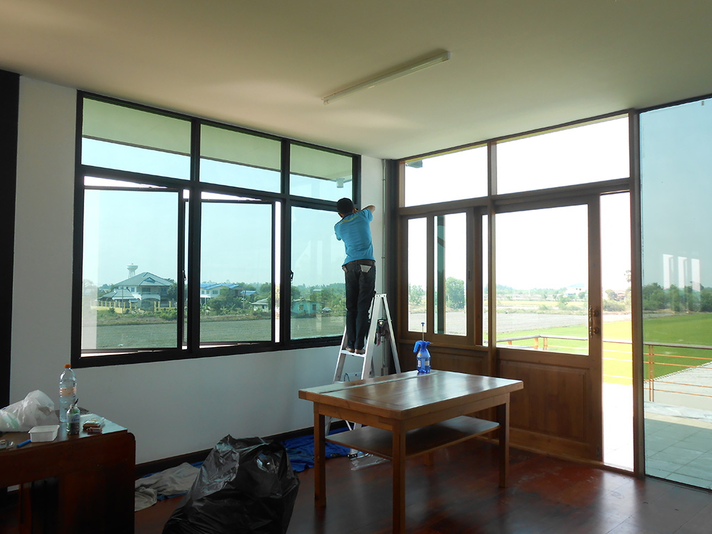 โรงสีข้าว ลี้เม่งเส็ง ได้สร้างออฟฟิศใหม่ ซึ่งด้านหน้าเป็นกระจกทั้งหมด ทำให้ช่วงเช้าแดดแรง ร้อนมาก จึงติดตั้งฟิล์มกรองแสงอาคาร เพื่อลดแสงจ้า ลดความร้อน ก่อนที่จะเข้ามาภายในอาคาร ฟิล์มกรแสงอาคารที่เลือกใช้เป็น NEXFIL RD 65 (ปรอทเขียวกลาง) มีค่าแสงส่องผ่าน 20% ป้องกันรังสี UV 99% มีค่าแสงสะท้อน 15% ค่าลดความร้อนรวม 65% ระยะเวลารับประกันนาน 5 ปี