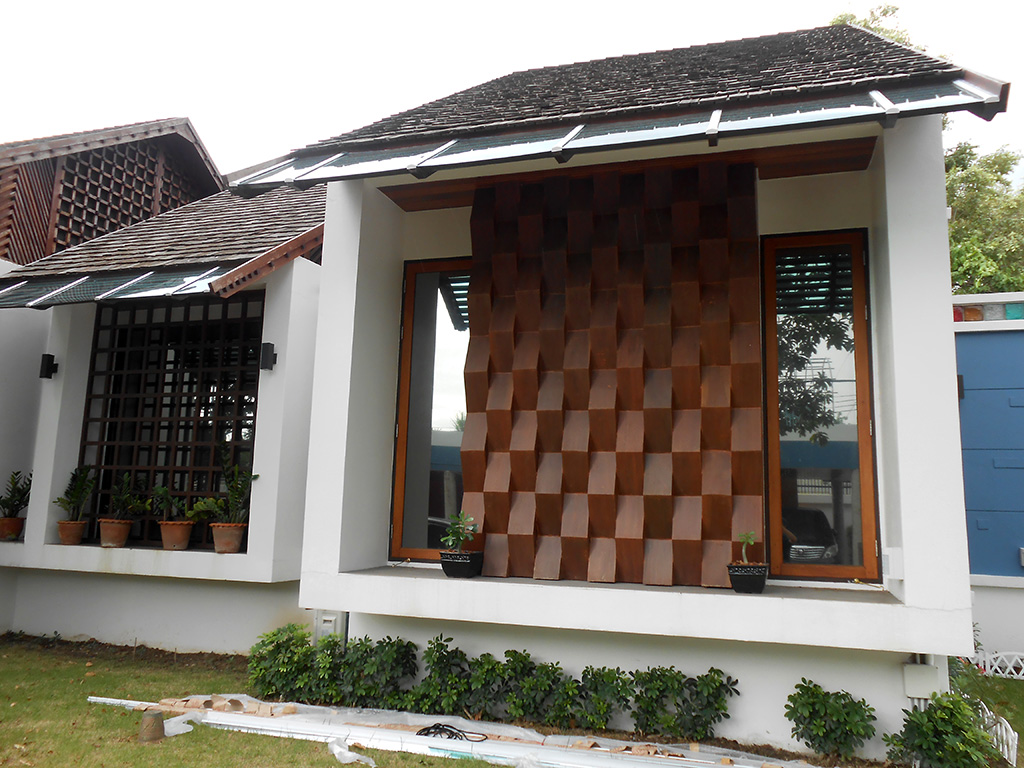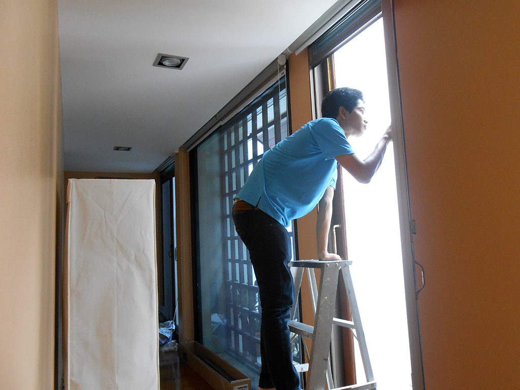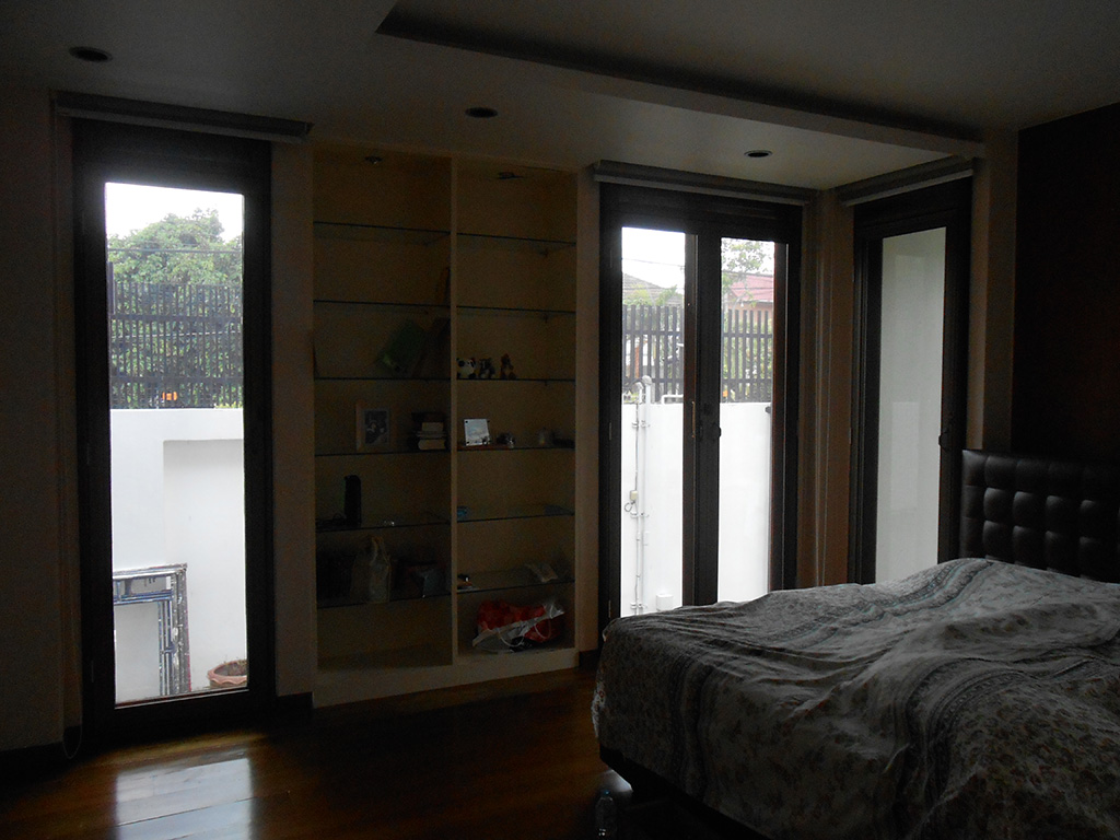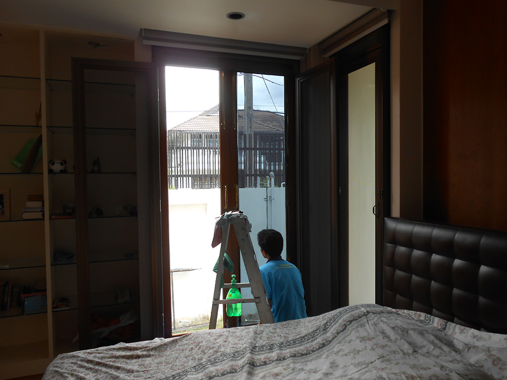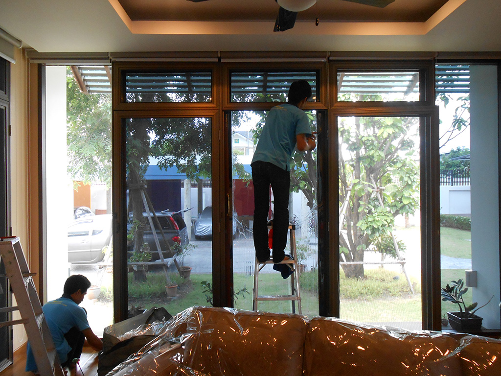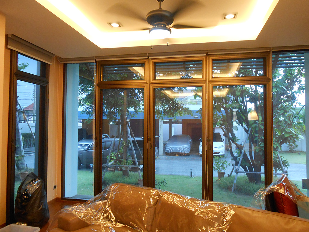 บ้านหลังนี้เจ้าของบ้านได้ติดม่านบังแดดและอยู่ได้ระยะนึงแล้ว แต่ช่วงเวลาแดดจ้าไอร้อนเข้ามาในบ้านมาก ทำให้ภายในบ้านร้อน อยู่ไม่สบาย จึงต้องติดฟิล์มกรองแสงกันความร้อนเพิ่มเติม ฟิล์มกรองแสงที่เลือกใช้คือ 3M BC10 มีค่าแสงส่องผ่าน 10% ป้องกันรังสี UV 99% มีค่าแสงสะท้อน 22% ค่าลดความร้อนรวม 72% ระยะเวลารับประกัน 7 ปี