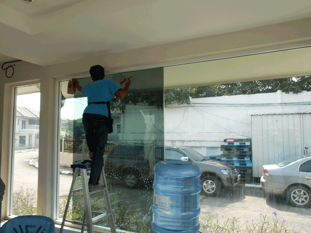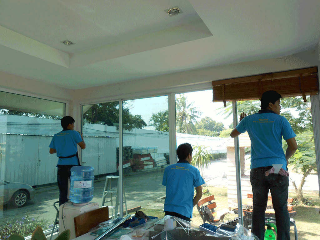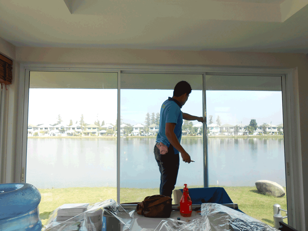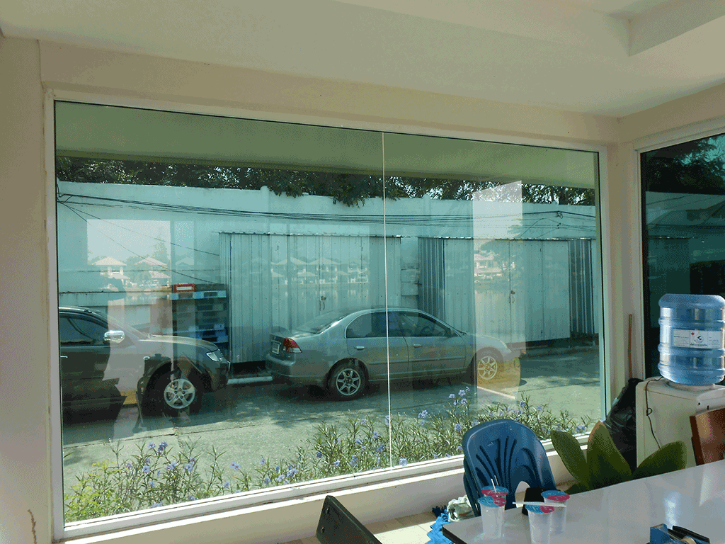 อาคารที่ทำการของนิติบุคคล หมู่บ้าน ศุภาลัย แกรนด์เลค กระจกค่อนข้างเยอะ ทำให้โดนแดดทั้งวัน จึงติดติดตั้งฟิล์มกรองแสง เพื่อลดแสงจ้า และลดความร้อน