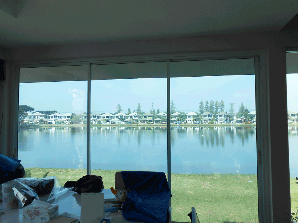 และด้านข้างฝั่งติดทะเลสาบ เลือกใช้ฟิล์มกรองแสงรุ่น คือ X-Guard RG40 (ฟ้าใส) มีค่าแสงส่องผ่าน 43% ป้องกันรังสี UV 98% มีค่าแสงสะท้อน 18% ค่าลดความร้อนรวม 75% ระยะเวลารับประกันถึง 5 ปี