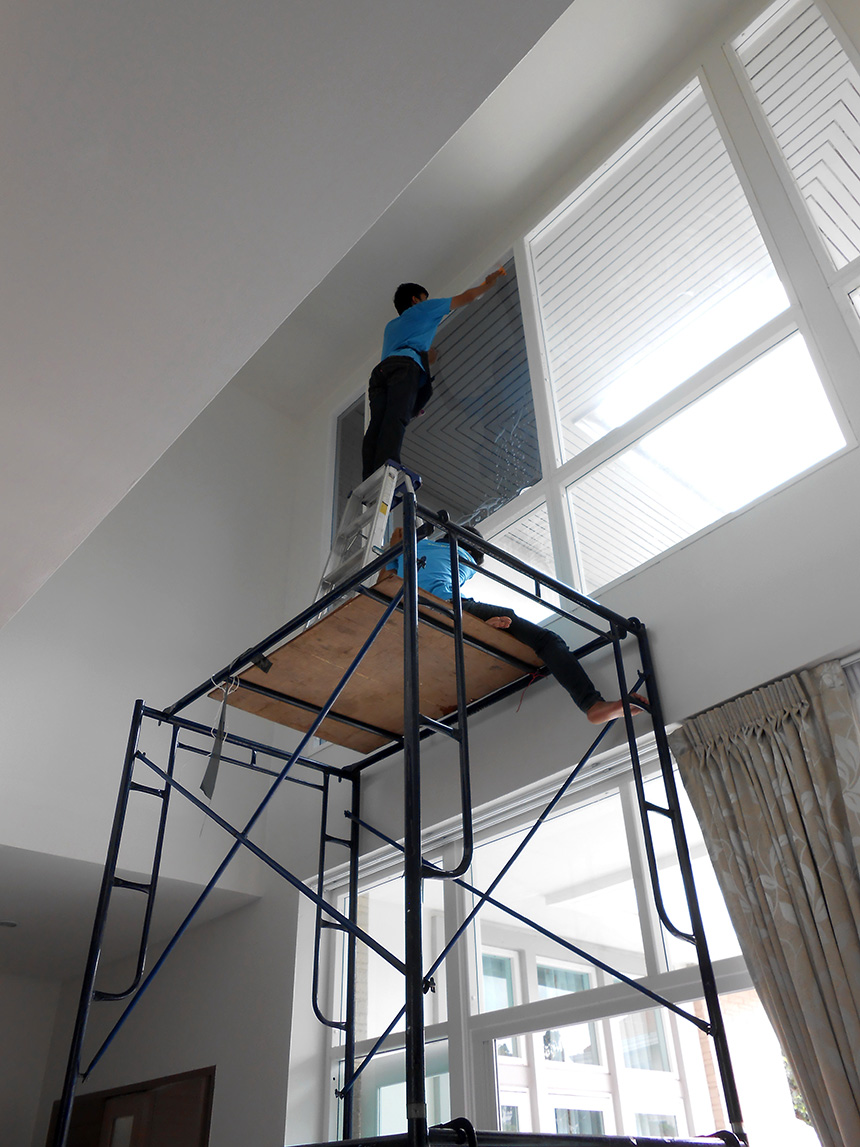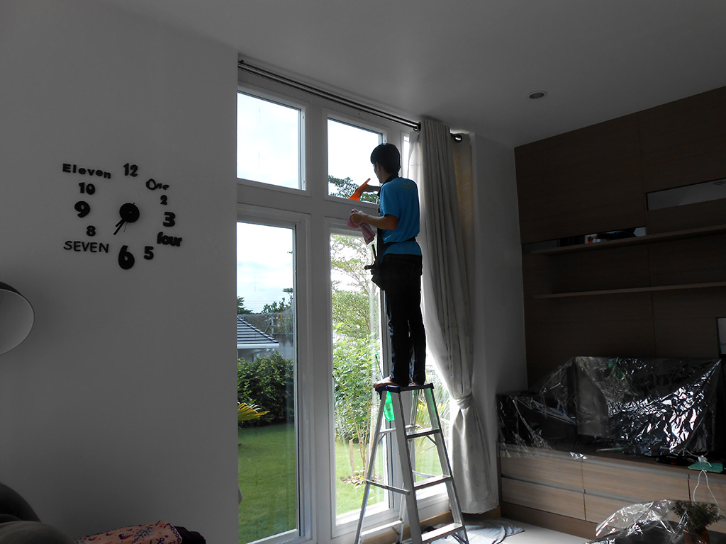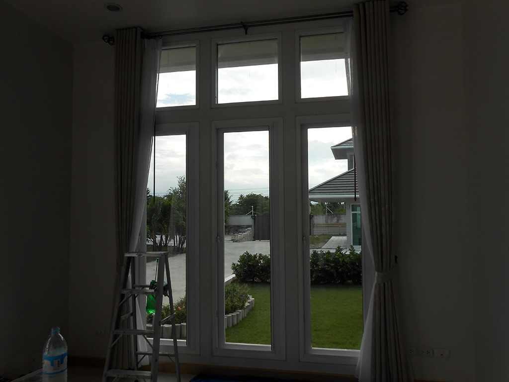 บ้านหลังนี้ออกแบบให้มีกระจกเยอะ เพื่อให้บ้านดูโปร่ง และแสงสว่างเข้าได้เยอะ ทำให้ช่วงเวลาพักผ่อน แดดจ้า ไอร้อนเข้า และมีแสงสะท้อนรบกวนการพักผ่อน จึงเลือกติดตั้งฟิล์มกรองแสงเพิ่มเติม ฟิล์มกรองแสงที่เลือกใช้เป็น MASTER MT70 สเปคฟิล์ม มีค่าแสงส่องผ่าน 15% ป้องกันรังสี UV 99% มีค่าแสงสะท้อน 10% ค่าลดความร้อนรวม 70% ระยะเวลารับประกัน 7 ปี