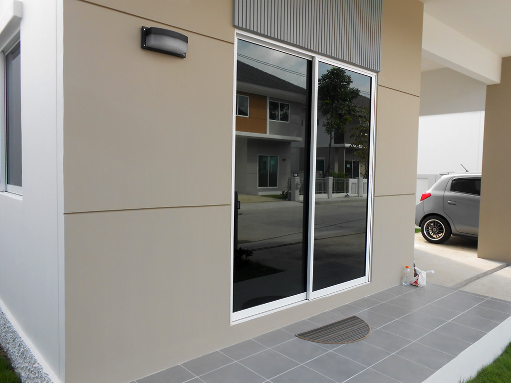 บ้านใหม่ก่อนเข้าอยู่ ต้องการติดฟิล์มกรองแสงอาคาร เพื่อลดความร้อน ลดแสงจ้า และสร้างความเป็นส่วนตัวให้กับผู้อยู่อาศัย เจ้าของบ้านเลือกใช้ฟิล์มกรองแสงอาคาร MAXGUARD รุ่น Steel 10 ซึ่งเป็นฟิล์มกรองแสงสำหรับอาคารโดยตรง มีสเปคดังนี้