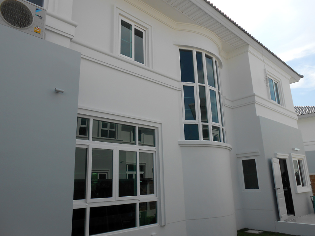 เจ้าของบ้านหลังนี้ เลือกที่จะติดฟิล์มเขียวใส เพราะต้องการให้บ้านสว่าง ดูโปร่ง สบาย แต่ยังสามารถลดความร้อนได้ จึงเลือกฟิล์มกรองแสงอาคาร Maxguard Nano Ceramic Series รุ่น NC60 โดยมีสเปค ดังนี้