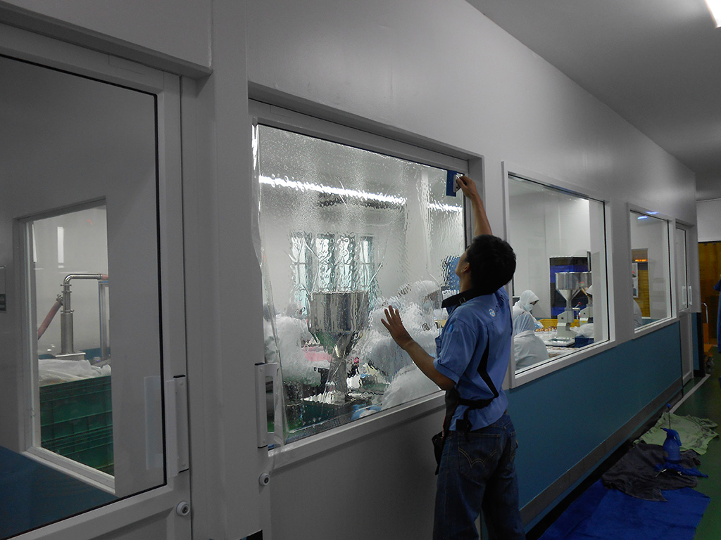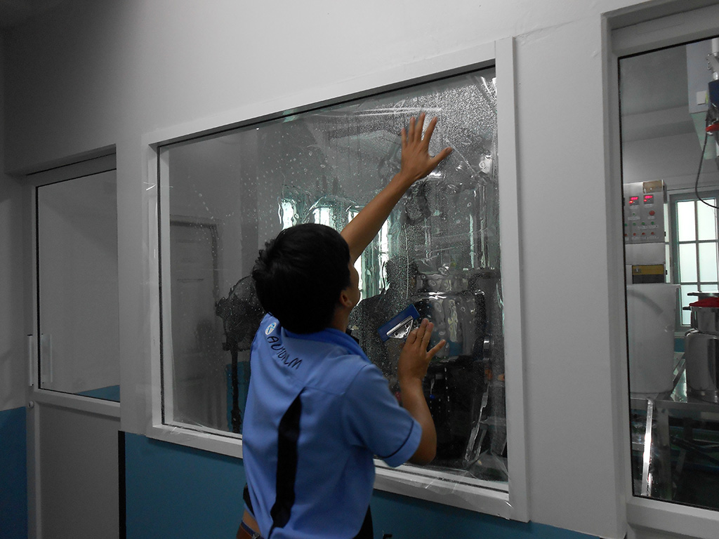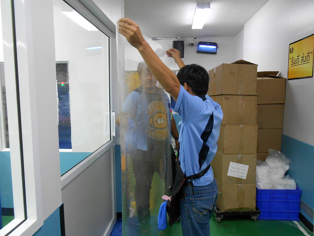 ในไลน์ผลิตมีกระจกหลายบาน ผู้บริหารได้ตัดสินใจติดฟิล์มนิรภัย เพื่อความปลอดภัยของพนักงาน และมาตรฐานในการผลิต ฟิล์มนิรภัยจะช่วยให้กระจกแตกยากขึ้น และเมื่อเกิดอบัติเหตุที่ทำให้กระจกแตกฟิล์มนิรภัยจะช่วยยึดกระจกไว้ไม่ให้แตกกระจาย ฟิล์มนิรภัยที่เลือกใช้เป็น Maxguard Safety 2 mil clear