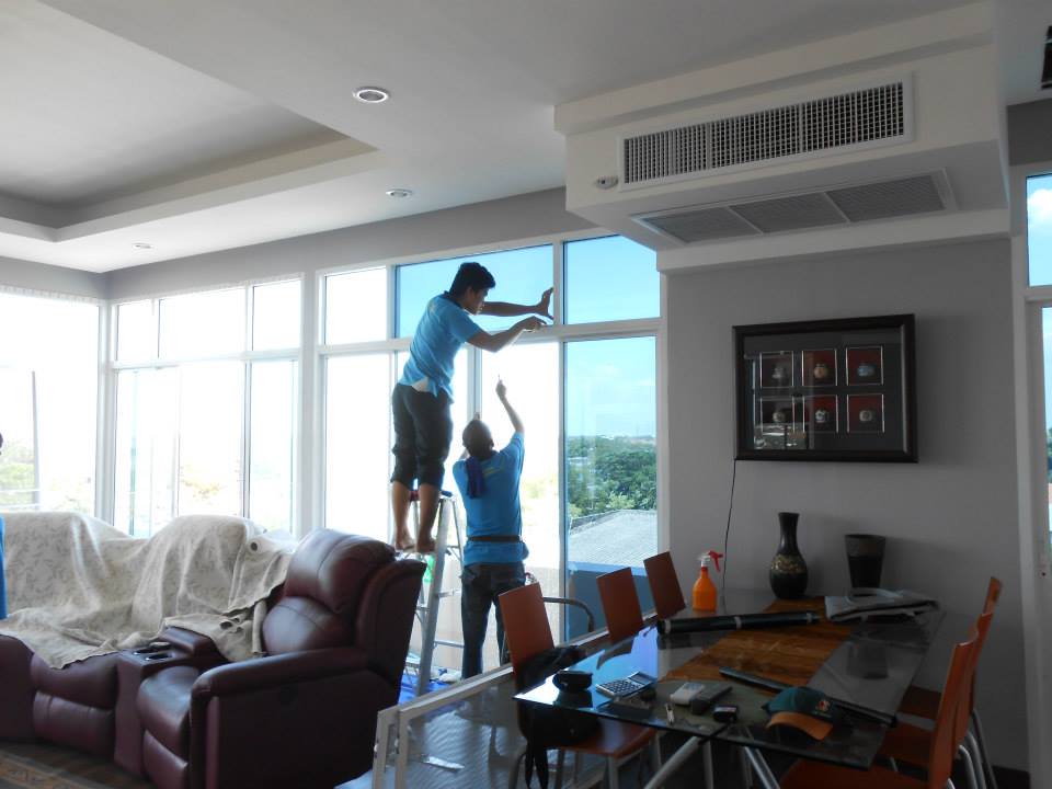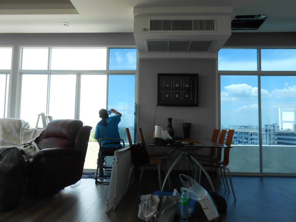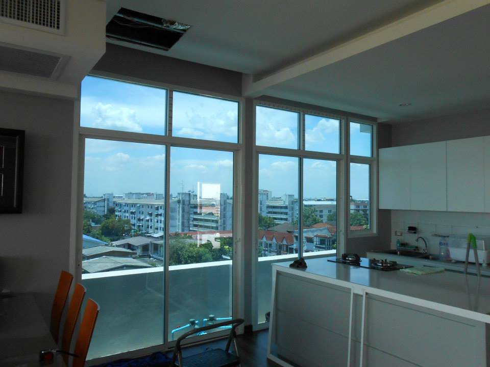 บ้านหลังนี้สร้างบนดาดฟ้าของอพาร์ทเม้น ทำให้เวลากลางวันร้อนมาก จึงติดตั้งฟิล์มกรองแสงเพื่อลดความร้อนและลดแสงจ้า ฟิล์มกรองแสงที่เลือกใช้คือ NEXFIL RD 90 มีค่าแสงส่องผ่าน 9% ป้องกันรังสี UV 99% มีค่าแสงสะท้อน 52% มีค่าลดความร้อนรวม 90% ระยะเวลารับประกันนานถึง 5 ปี