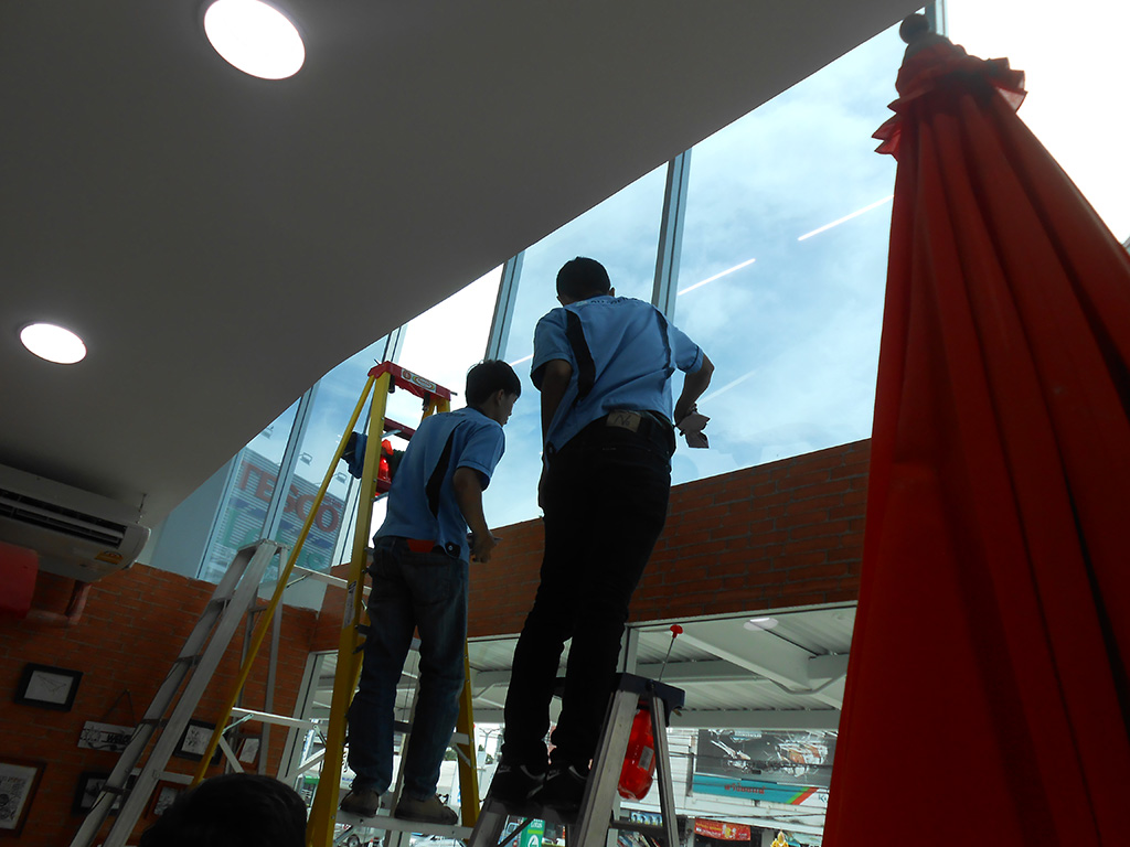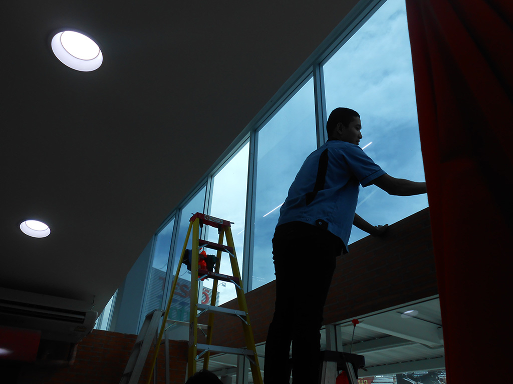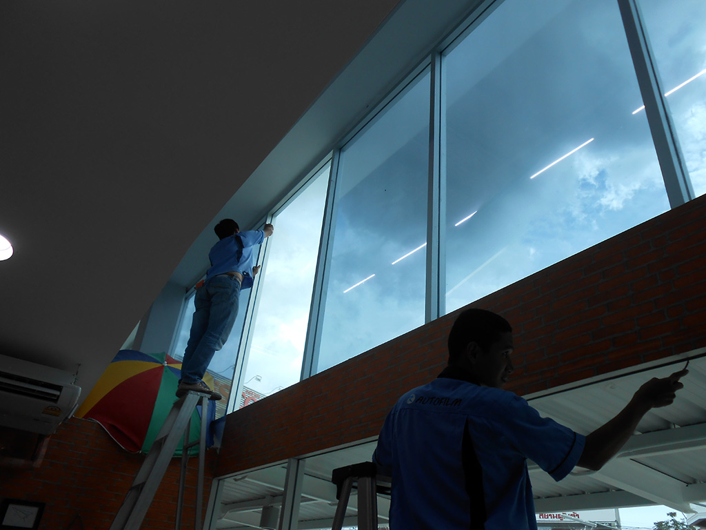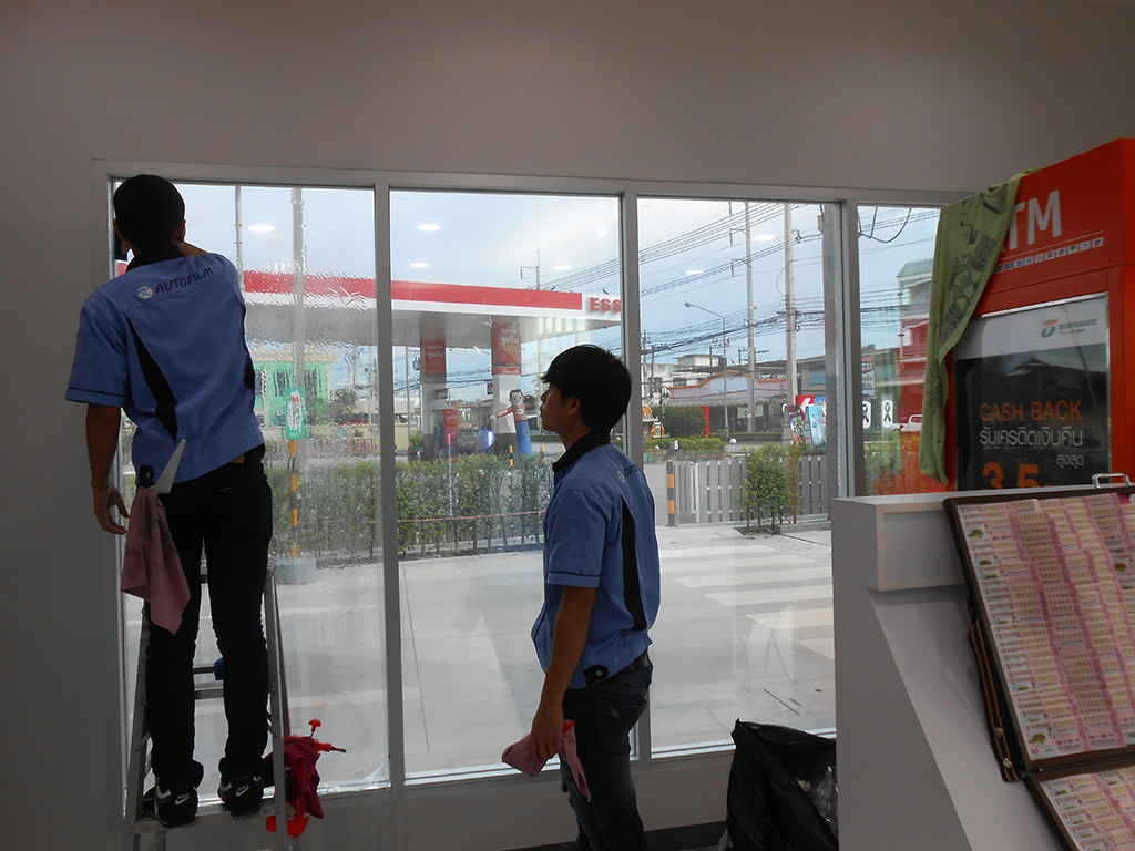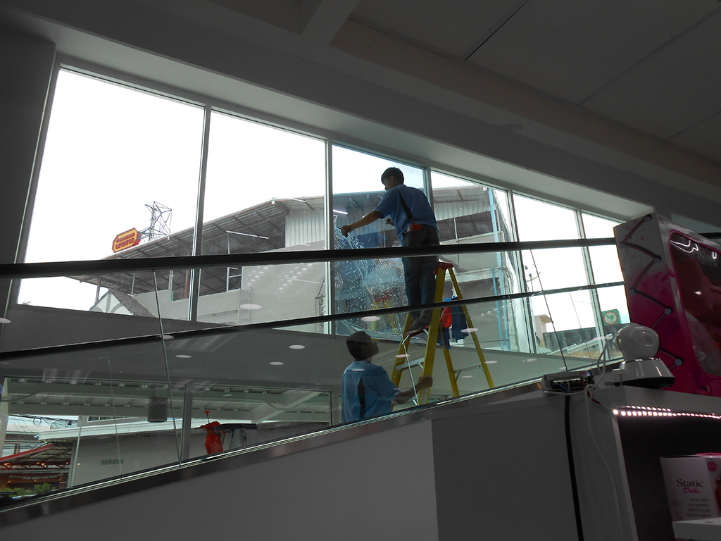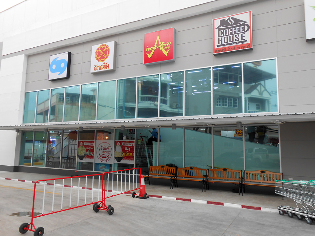 งานนี้มาไกลถึง อ.ลาดยาว จ.นครสวรรค์ กับงานต่อเนื่องของ TESCO LOTUS เป็นงานติดฟิล์มกรองแสงอาคารที่กระจกชุดบนด้านหน้าอาคารที่รับแดดเต็มๆ ช่วงบ่าย ทำให้เกิดความร้อน ส่งผลต่อร้านค้าที่อยู่ใกล้กับกระจก และลูกค้าที่ลงบันไดเลื่อน ฟิล์มกรองแสงอาคารที่ผู้บริหารเลือกใช้เป็น Viewtech รุ่น VT Silver15 ซึ่งมีสเปคดังนี้