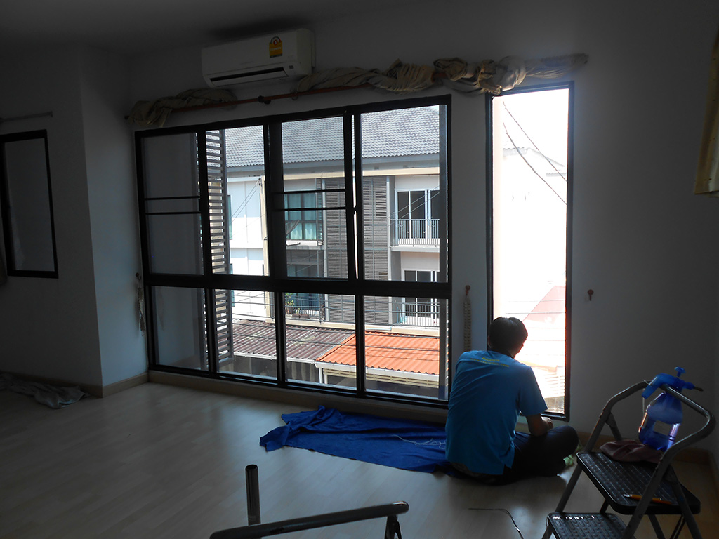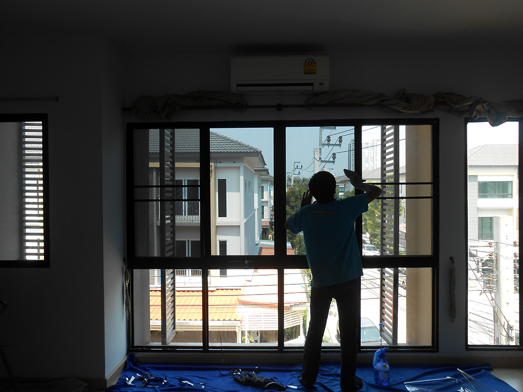 บ้านหลังนี้เป็นทาวน์โฮม 3 ชั้น อยากติดฟิล์มกรองแสงอาคาร เพื่อลดความร้อน และลดแสงจ้า เข้ามาภายในบ้าน และไม่อยากปิดม่านตลอดเวลา ฟิล์มกรองแสงสำหรับอาคาร ที่เลือกใช้เป็น MAXGUARD Chrome20 ซึ่งเป็นฟิล์มกรองแสงสำหรับอาคารที่กันความร้อนได้ดี ไม่ทึบจนเกินไป และมองออกเป็นธรรมชาติ สเปคฟิล์มกรองแสงมีดังนี้ มีค่าแสงส่องผ่าน 20% ป้องกันรังสี Infrared 82% ป้องกันรังสี UV 99% มีค่าแสงสะท้อน 28% ค่าลดความร้อนรวม 72% ระยะเวลารับประกัน 7 ปี