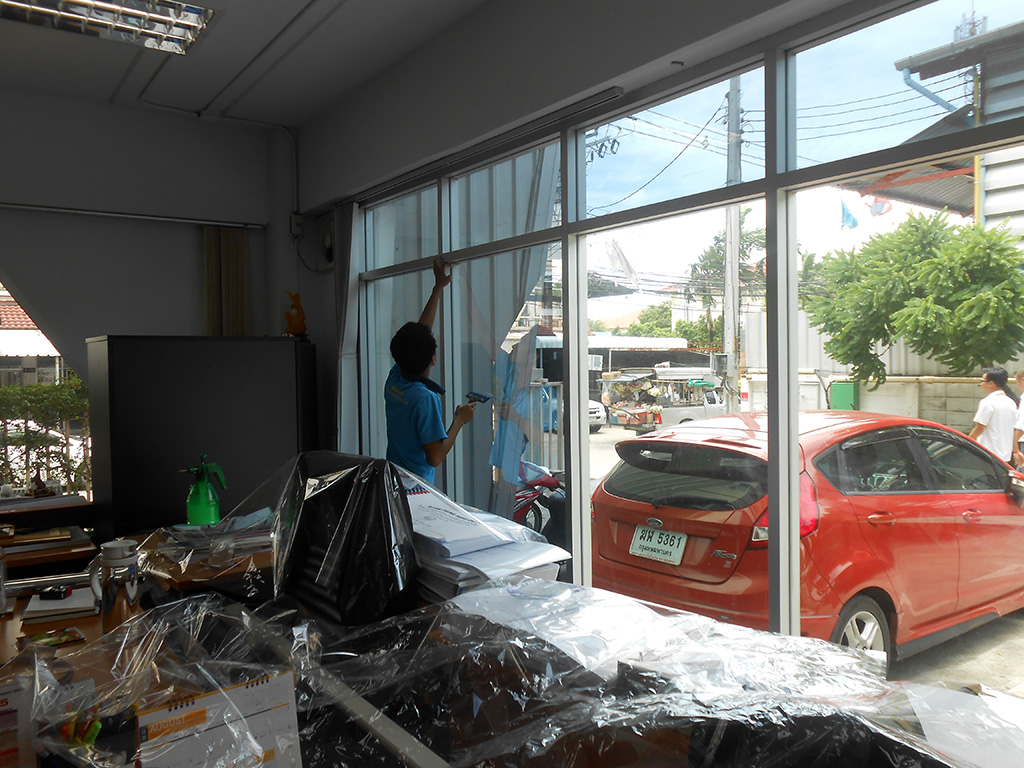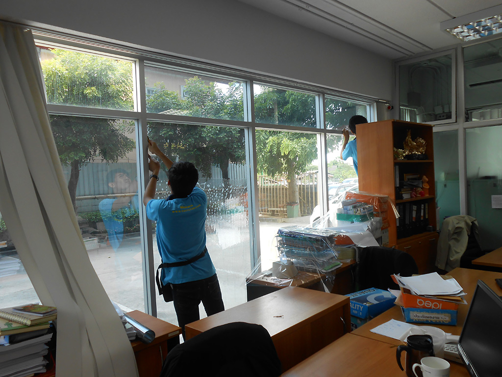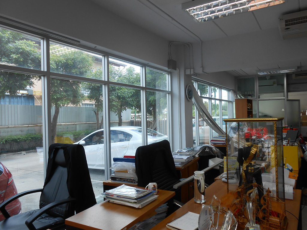 การติดฟิล์มเป็นนโยบายประหยัดพลังงานของผู้บริหาร มีวัตถุประสงค์เพื่อลดความร้อน แต่ยังคงความสว่างไว้ ฟิล์มกรองแสงที่เลือกใช้เป็น MASTER MT50 สเปคฟิล์ม มีค่าแสงส่องผ่าน 20% ป้องกันรังสี UV 99% มีค่าแสงสะท้อน 40% ค่าลดความร้อนรวม 80% ระยะเวลารับประกัน 7 ปี