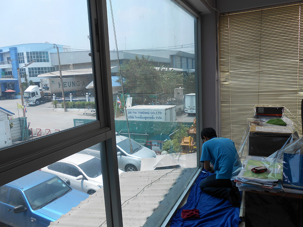 เมื่อแดดแรงขึ้น ทำให้อากาศร้อนขึ้น ถึงแม้จะมีมู่ลี่อยู่แล้วก็ตาม ทางบริษัทจึงทดลองติดตั้งฟิล์มกรองแสงอาคารที่ออฟฟิศบางส่วน โดยติดตั้งฟิล์มกรองแสงอาคารด้านที่โดนแดด ผลปรากฏว่า พนักงานพอใจอย่างมาก เพราะฟิล์มกรองแสงอาคาร ช่วยดร็อปแสงลงได้เยอะ และป้องกันความร้อนก่อนที่จะเข้ามาภายในอาคาร ทำให้พนักงานทำงานได้อย่างสบายตา และสบายกาย ฟิล์มกรองแสงอาคารที่เลือกใช้คือ Nexfil RD90 ซึ่งเป็น ฟิล์มกรองแสงสำหรับอาคาร โดยตรง มีประสิทธิภาพในการลดความร้อน และลดแสงจ้าได้ดี มีค่าแสงส่องผ่าน 9% ป้องกันรังสี Infrared 80% ป้องกันรังสี UV 99% มีค่าแสงสะท้อน 52% ค่าลดความร้อนรวม 80% ระยะเวลารับประกัน 5 ปี